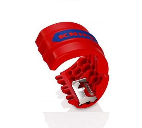Tagliatubi Knipex "BIX" per tubi in plastica e manicotti di tenuta - Codice 90 22 10 BK.Questo tagliatubi Knipex è particolarmente ingegnoso: taglia i tubi in modo pulito e senza scarti, in pochi giri e si adatta alla mano.Taglia tra le altre cose i tubi delle acque reflue ad alta temperatura e corrugati elettrici in pochissimo tempo.Accorcia manicotti antigoccia e di tenuta per l'assemblaggio finale, in prossimità del muro secondo le norme, con circa 2-3 mm di distanza dalla parete.Taglia tubi di plastica non rinforzata con Ø da 20 mm a 50 mm e spessore delle pareti fino a 2,4 mm.Taglia tubi in plastica dolce e quelli con anima in schiuma da Ø 20 a 50 mm e spessore delle pareti fino a 3,5 mm.Blocco lame girevole per il taglio di tubi di plastica (lama al centro) o manicotti antigoccia e di tenuta (lama all'esterno).Con meccanismo di bloccaggio per un trasporto sicuro.