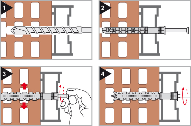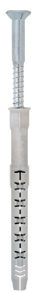 Tassello prolungato per serramenti FM-X5 con vite TPD e bordo svasato.Tassello assemblato, vite TPS zincata bianca.