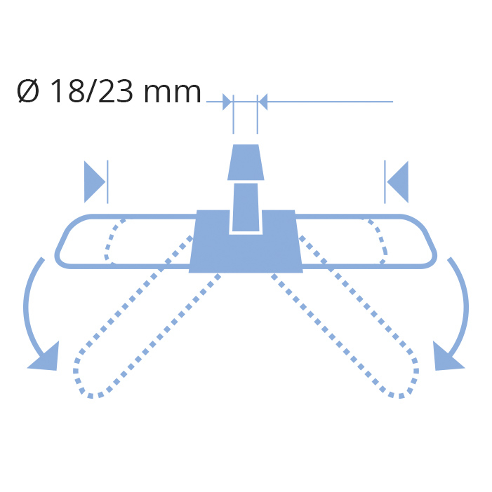 Telaio pieghevole - codice TTS 00000803.Per la spolveratura pavimenti con relative frange, ideale per qualsiasi tipo di sporco e superficie.Placca, snodo e bocchettone in materiale plastico. Archi in metallo.Grazie alla ghiera universale, si possono utilizzare tutti i manici con diametro da diametro 18 mm. a 23 mm. Il bocchettone snodato facilita l'uso dell'attrezzo in ambienti ostacolati. Inoltre è ruotabile a 360° per una completa mobilità.