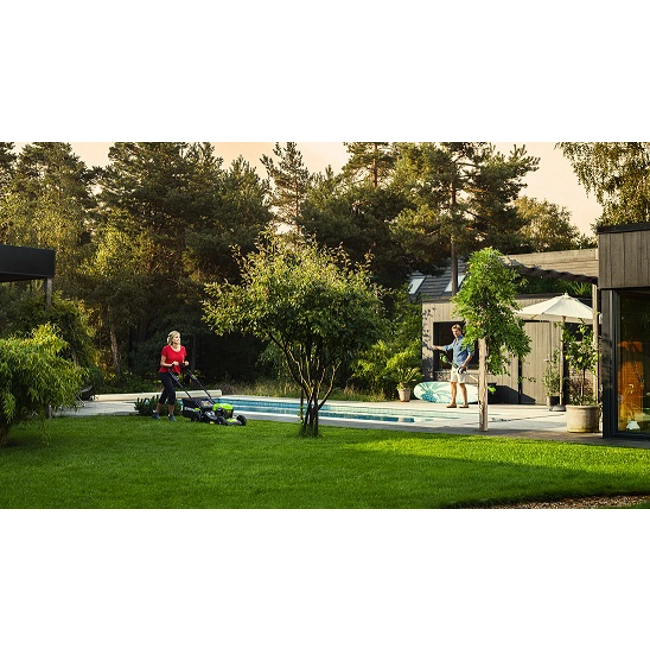 Tosaerba a spinta leggero e maneggevole A BATTERIA 46 CM senza spazzole - Art. 2511607UB.Questo pratico e versatile tosaerba semovente alimentato a batterie da 48V, ha un potente motore brushless progresssivo, che riduce drasticamente le vibrazioni e richiede una manutenzione minima.Ha una velocità variabile progettata per una maggiore praticità, con una larghezza di taglio di 46 cm, adatta ad affrontare un'area fino a 900 m2 con una sola carica e fino a 1800 m2 se si utilizza la porta per doppia batteria con una seconda batteria.L'altezza di taglio può essere regolata con 7 altezze grazie all'apposito bottone, da un minimo di 25 mm ad un massimo di 80 mm.La scocca è realizzata in acciaio per l'assorbimento di eventuali urti e la maggiore durabilità nel tempo.Ha un sistema di sgancio rapido del manico con impugnature pieghevoli, per risparmiare spazio può essere facilmente riposto verticalmente.