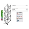 Traversini quadri maggiorati 40x40 mm. che collegano le ampie spalle senza bisogno di rinforzi aggiuntivi. Spalle larghe 109 cm. Montanti 25x80 mm.Piani in alluminio con calpestio in legno Eurodeck antiscivolo, idroresistente e melaminico certificati. Anime d'acciaio per innesti verticali.Grande base:-Pesante struttura da 64 kg. di alluminio e acciaio sempre ferma e stabile anche ad alte quote.-Traversa di base con crocera rapida.-Rinforzo.-Pesanti blocchi porta ruote in alluminio fuso.-Ruote a disassamento Ø 200 mm. Fascia fermapiedi pieghevole in alluminio, corpo unico. Blocco istantaneo delle saette con esclusive molle inox.Stabilizzatori grandi (nei modelli previsti) da 110 cm. bloccati con forti morsetti di alluminio, orientabili anche lateralmente.