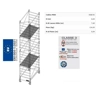 NORMATIVA EUROPEA EN1004-1:2021. 1 – PRIMO PIANO da terra altezza max 3,40 m. Altezza tra i piani successivi max 2,25 m.2 - Il KIT DI PROTEZIONE E’ OBBLIGATORIO sul piano di sosta di lavoro ed anche sui piani di passaggio. 3 – La FASCIA FERMA PIEDE E’ OBBLIGATORIA solo sul piano di sosta di lavoro. 4 - Per montaggio e smontaggio SONO OBBLIGATORIE MINIMO 2 PERSONE.