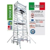 TRABATTELLO IN ALLUMINIO SU RUOTE DOGE 80 - Codice Facal DG8/6CIT. Trabattello professionale di rapido montaggio.Struttura completa di piani a norma Decreto Legislativo 81/2008. Obbligo ancoraggio a muro o struttura fissa ogni 4 metri (stabilizzatori non obbligatori).Il montaggio ed utilizzo deve essere eseguito con cinture di sicurezza complete di dispositivi anti caduta, a cura dell'utilizzatore.Grande solidità e fermezza grazie alle traverse in alluminio fuso e traverse laterali che legano ogni alzata.