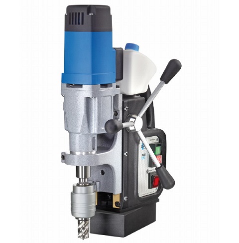 Perforatore a base elettromagnetica serie "START" 455 SB. Cod. 0084309.BASE GIREVOLE.La perforatrice magnetica MAB 455 SB è dotata di base girevole e adatta per le lavorazioni più difficili perfetta per l'officina e per interventi esterni.La MAB 455SB è una perforatrice a base magnetica per impieghi gravosi dotata di un sistema di mandrini KEYLESS per un cambio utensile facile e veloce. Il trapano a base magnetica MAB 455SB equipaggiato con Morse Taper 2 è adatto anche per punte elicoidali fino a 18 mm di diametro con codolo conico.Disponibile con il dispositivo di regolazione della Base Girevole per un facile centraggio anche durante la foratura sopratesta o su una superficie verticale. CaratteristicheDotata di sistema a base girevoleIndicatore del magneteMandrino a cambio rapido KeylessLubrificazione interna permanente automaticaCablaggio internoMotoriduttore a bagno d'olioCono Morse 2Cambio a due velocità FINO AD ESAURIMENTO SCORTE LE MACCHINE POTREBBERO ESSERE FORNITE COME DA DESIGN PRECEDENTE.LE CARATTERISTICHE TECNICHE RIMANGONO INVARIATE.