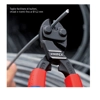KNIPEX CoBolt®. DIN ISO 5743. Tronchesi a doppia leva, 60% minor sforzo rispetto ai tradizionali tronchesi con tagliente laterale. Il tronchese KNIPEX a doppia leva è un utensile "intelligente". Il geniale meccanismo di trasmissione garantisce un rapporto di leva estremamente vantaggioso con un attrito minimo. La forza di taglio moltiplica di oltre 20 volte la forza manuale da applicare. Per tagliare un filo armonico Ø 2,0 mm con il tronchese KNIPEX CoBolt, è necessaria una forza di soli ~ 190 N (19 kp) in confronto ai ~ 500 N (50 kp) necessari con un tronchese con tagliente laterale della stessa lunghezza.