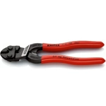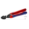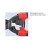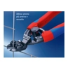 KNIPEX CoBolt® - Art.7122200. DIN ISO 5743. Tronchesi a doppia leva con testa piegata 20°. 60% minor sforzo rispetto ai tradizionali tronchesi con tagliente laterale. Il tronchese KNIPEX a doppia leva è un utensile "intelligente". Il geniale meccanismo di trasmissione garantisce un rapporto di leva estremamente vantaggioso con un attrito minimo. La forza di taglio moltiplica di oltre 20 volte la forza manuale da applicare. Per tagliare un filo armonico Ø 2,0 mm. con il tronchese KNIPEX CoBolt, è necessaria una forza di soli ~ 190 N (19 kp) in confronto ai ~ 500 N (50 kp) necessari con un tronchese con tagliente laterale della stessa lunghezza. Caratteristiche In acciaio al cromo vanadio, forgiato, temperato ad olio a gradini. Esecuzione bonderizzata nera. Forma: 2. Manici rivestiti in materiale bicomponente. Con taglienti di precisione per filo a bassa e ad alta resistenza e per filo armonico. Capacità di taglio particolarmente elevata con minore sforzo tramite rapporto di trasmissione ottimale. Taglienti ulteriormente temperati ad induzione, durezza ca. 64 HRC. Bloccaggio sicuro con pratico fermo della molla. L'incavo nel tagliente, semplifica il taglio di fili di spessore maggiorato, per esempio per aste di sospensione di controsoffitti. Caratteristiche del modello 7122200 Capacità di taglio ottimizzata. Taglio di grosse sezioni facilitato mediante tagliente micro-strutturato. Testa piegata di 20° per un taglio raso. Molla di apertura con possibilità di blocco. Con superficie di contatto sotto l'articolazione per la presa e l'estrazione di fili metallici a partire dal Ø 1,0 mm. Manici rivestiti in materiale bicomponente e in posizione obliqua rispetto alla linea di taglio per una maggiore libertà di movimento.