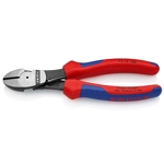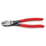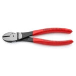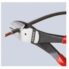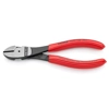 Tronchesi laterali per meccanica tipo "forte" - Articolo Knipex 7401. DIN ISO 5749. Progettate per la massima sollecitazione continua. L’ottimale combinazione tra il rapporto di leva e la geometria dei taglienti garantiscono elevata capacità di carico e lunga durata senza sforzo (circa il 20% di sforzo in meno rispetto ai comuni tronchesi con tagliente laterale della stessa lunghezza). Caratteristiche Taglienti di precisione ulteriormente temperati ad induzione (durezza circa 64 HRC) per tutti i tipi di filo metallico incluso filo armonico. Acciaio al cromo vanadio ad alte prestazioni, forgiato, temperato ad olio a gradini. Con articolazione forgiata.