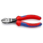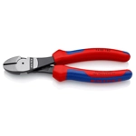 Tronchesi laterali per meccanica tipo "forte" - Articolo Knipex 7402. DIN ISO 5749. Progettate per la massima sollecitazione continua.L’ottimale combinazione tra il rapporto di leva e la geometria dei taglienti garantiscono elevata capacità di carico e lunga durata senza sforzo (circa il 20% di sforzo in meno rispetto ai comuni tronchesi con tagliente laterale della stessa lunghezza). Caratteristiche Taglienti di precisione ulteriormente temperati ad induzione (durezza circa 64 HRC) per tutti i tipi di filo metallico incluso filo armonico.Acciaio al cromo vanadio ad alte prestazioni, forgiato, temperato ad olio a gradini.Con articolazione forgiata.