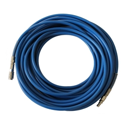 Tubo poliuretano retinato flessibile. Tubo flessibile retinato in poliuretano per utensileria in genere, verniciatura, aerografi, soffiaggio, ecc. Estremamente resistente all'abrasione e alla flessione grazie alle caratteristiche del poliuretano, le cui capacità sono 5 volte superiori al PVC tradizionale. Resistente all'azione di gran parte dei prodotti chimici. Rinforzo tessile con poliestere ad alta tenacità.