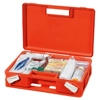 Valigetta per primo soccorso MED P2 - art.111072. In polipropilene. Estraibile e con supporto a muro. Per aziende del gruppo C. Contenuto come da all.2 base a norma D.M 388 del 15/07/03 - D.Lgs. 81/08:1 copia Decreto Min 388 del 15.07.03;2 Paia guanti sterili;1 Disinfettante 125 ml IODOPOVIDONE al 10% iodio PMC;1 soluzione fisiologica 250 ml CE;1 Busta garza compressa sterile 18x40 cm;3 Buste garza compressa sterile 10x10 cm;1 Pinza sterile;1 confezione di cotone idrofilo;1 PLASTOSAN 10 cerotti assortiti;1 Rocchetto cerotto adesivo m 5x2,5 cm;1 Benda di garza m 3,5x10cm;1 Paio di forbici cm 10 FOR078;1 Laccio emostatico;1 ICE PACK Ghiaccio istantaneo monouso;1 Sacchetto per rifiuti sanitari 250x350 mm.