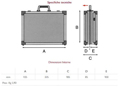 Allestimento internon.1 tasca porta documentin.1 pannello porta utensili con elastici su due latin.1 pannello porta utensili con elastici su un laton.2 cassettini portaminuterian.2 braccetti reggicoperchio con molla di sicurezzaFondo portaoggetti termo formato a 3 scomparti fissi