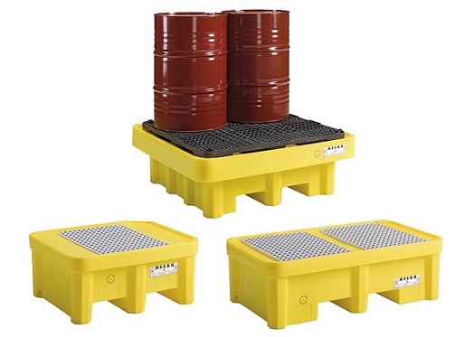 Per la raccolta di liquidi che potrebbero fuoriuscire dai contenitori posti sopra di esse. L'impiego delle vasche di sicurezza è richiesto dalla legge sulla tutela ambientale ogni qualvolta un'azienda utilizzi liquidi quali oli, acidi o sostanze infiammabili per evitare l'inquinamento del suolo e delle falde acquifere. Idonee a liquidi inquinanti per le acque delle categorie GHS 1-4. Non sono ammesse sostanze infiammabili.