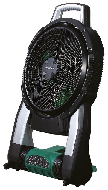 Ventilatore cordless 18V - SOLO CORPO MACCHINA - Codice HiKOKI UF18DSALL0Z. Funzione di oscillazione automatica per creare in modo efficiente una brezza fresca nell'ambiente circostante.Il ventilatore può fornire una velocità massima di 190 m / min (in modalità alta) tramite un motore del ventilatore ad alta efficienza.La velocità del vento può essere commutata tra le modalità alta e bassa.Facile da trasportare in quanto può essere piegato. L'angolo del ventilatore può essere regolato entro un intervallo di 45° per cambiare la direzione del vento.Alimentazione a batteria 18V oppure può essere alimentato da rete elettrica domestica a 220V.Quando l'adattatore CA e la batteria vengono utilizzati contemporaneamente, l'adattatore CA ha la priorità.L'adattatore CA deve essere utilizzato all'interno.Questa ventola non ha una funzione di ricarica.Comodo timer di spegnimento.Il tempo di funzionamento può essere impostato su 1 ora, 2 ore o 4 ore.
