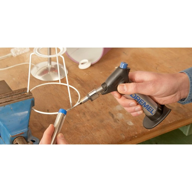 Dremel® VersaFlame (2200-4). Dremel VersaFlame è l'unico cannello per saldatura che supporta l'utilizzo della fiamma libera ed è dotato di un catalizzatore e di una testa per saldatura. Queste caratteristiche ne fanno il cannello di saldatura più versatile del mercato, particolarmente efficace per le applicazioni fai-da-te. Dremel VersaFlame è alimentato a butano liquido, per un riscaldamento veloce e una ricarica rapida. Le applicazioni sono le seguenti: saldatura, termoretrazione, brasatura, ecc.