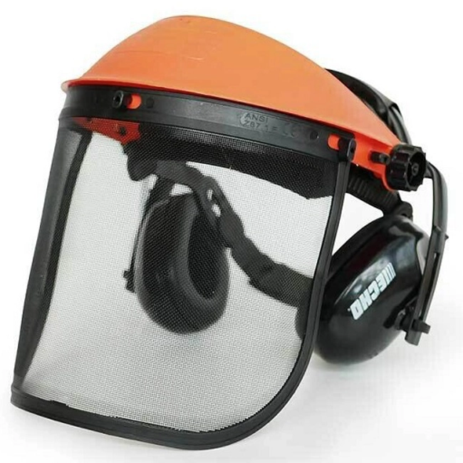 Comoda visiera protettiva con cuffie regolabili.