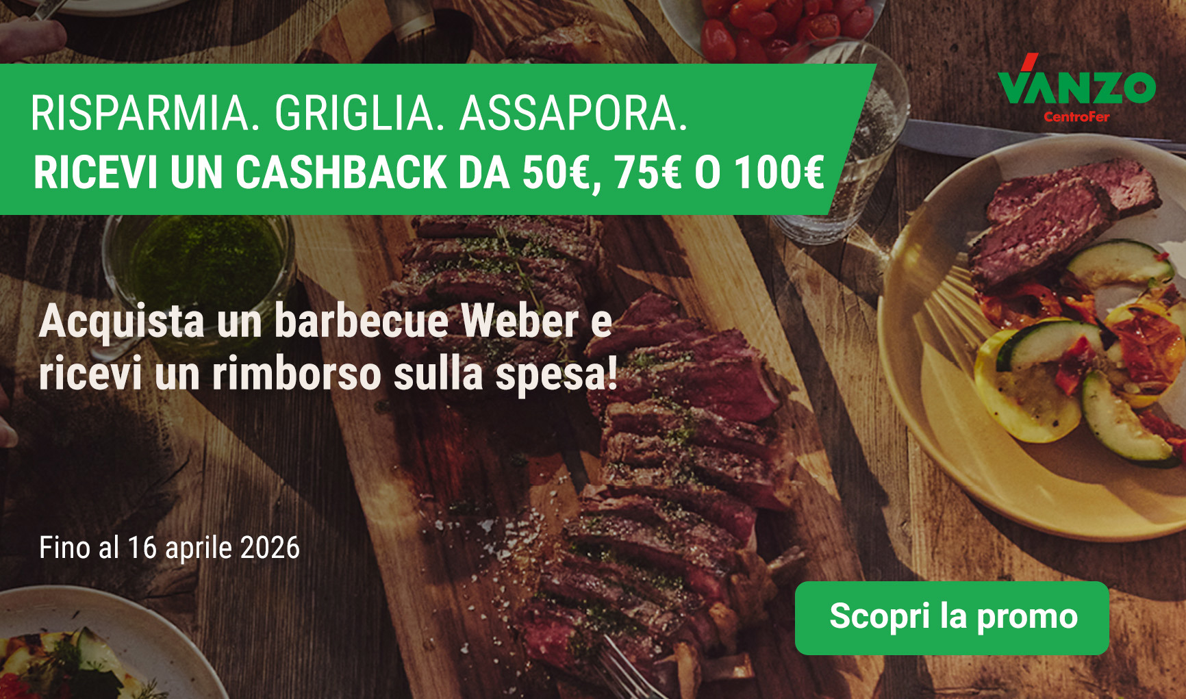 Dal 13 marzo al 16 aprile 2026, acquista un barbecue a gas Weber Spirit o Weber Genesis idoneo e richiedi un cashback da 50€, 75€ o 100€.